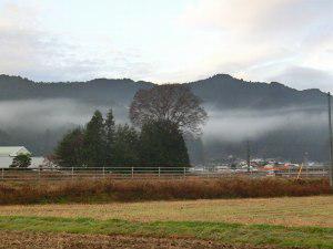 加蘇コミュニティセンター付近から見える山に雲(層雲)がかかっている風景はとても風情があります。