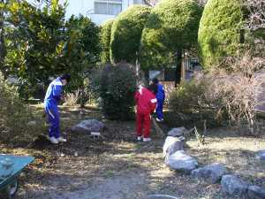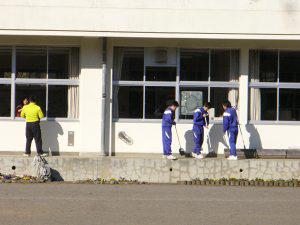 今回は、各フロアの窓ふきを中心に校内、体育館まわりの清掃を行いました。