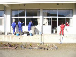 今回は、各フロアの窓ふきを中心に校内、体育館まわりの清掃を行いました。