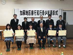 1月21日(火)、加蘇地区青少年育成市民会議より善行篤行青少年が表彰されました。