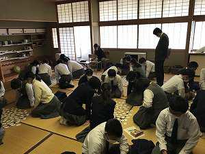 上の句を読んでいる最中に札をとる班や、下の句を繰り返し読んで「あった!」と元気よく札をとる班がありました。