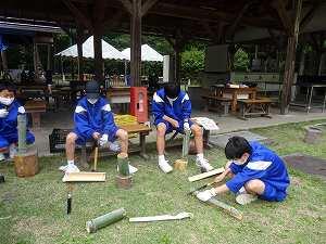 入所式の後、竹食器作りをしました。