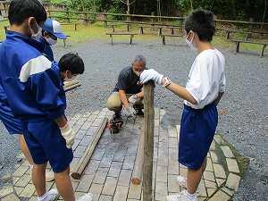 どの班も火起こしを成功できました。