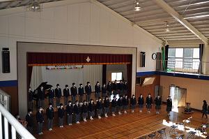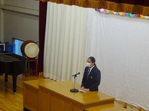 実行委員長のあいさつです。 今年度は校歌を全員で歌いました。校歌を