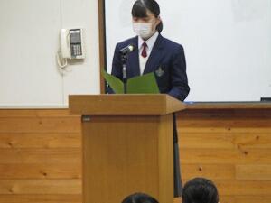 各学年の代表生徒による意見発表と校長先生のお話がありました。