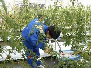 広いビニールハウスの中で黙々と作業を進めていました。