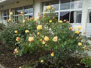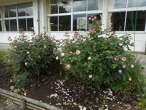 加蘇中のバラが徐々に咲き始めました。このバラは7年前から加蘇中で育て始めました。バラの管理は大変ですが、美化委員会での活動や職員の世話などで毎年きれいなバラが咲いています。今後も加蘇中学校の伝統となるよう大切にバラを育てていきたいです。