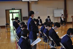 5月24日(火)に生徒総会が行われました。議事をすすめていくなかで、各委員会や各部活の予算や活動の内容について質問が飛び交いました。生徒それぞれが主体的に学校のことを考えるとてもよい機会となりました。