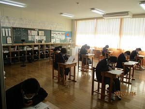 11月24日(木)は定期テストの1日目でした。生徒一人一人が真剣な表情で、今までの学習の成果を発揮しテストに臨んでいました。特に3年生は、1月に私立高校の入試もありますので、さらに引き締まった表情で取り組んでいました。