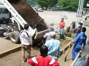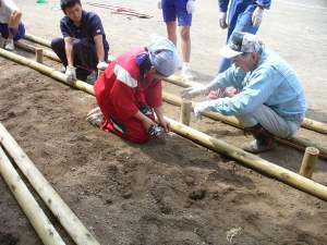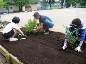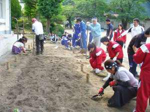 例年行っている機械による草刈りと学校回りの除草の他に、今回は花壇作りを行いました。