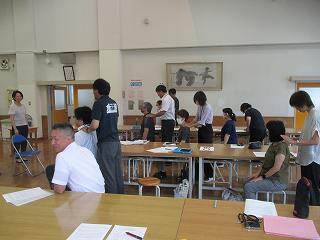 実技のあとに本日の研修内容について、班別になってシェアリングを行いました。