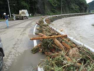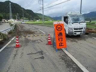 流木等は取り除かれましたが、久我岩の下の幹線道路では、片側一車線の通行となっています。