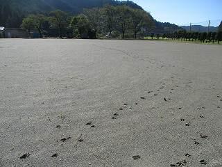 校庭には、毎朝、獣の足跡が見られるようになりました。