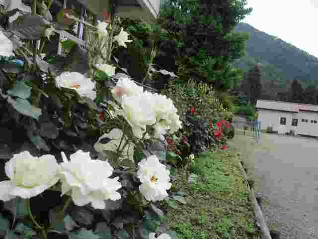 職員が消毒をしたり、剪定や肥料をあげたりして大切に育てています。子どもたちも、委員会活動などで、除草作業を行いました。