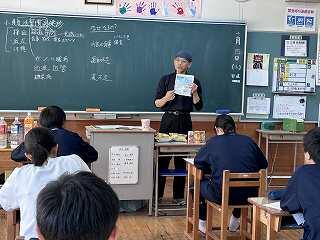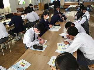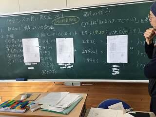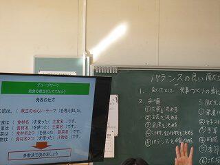 11月29日(金)に加園小学校の栄養士の先生をお招きし、家庭科の授業の一環として、給食の献立を考えました。