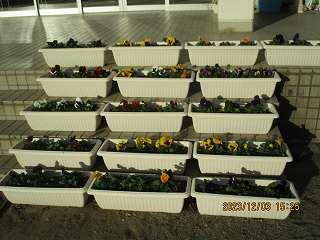 11月2日に全校生徒で、美化委員長の指示のもと、パンジーの花植えを行いました。