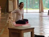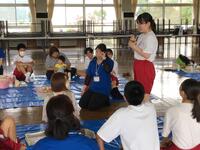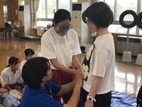正しいラジオ体操の説明を先生から受けて実践しています。