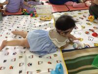 みんなで協力して色々な種類のボールや玉を運んで、バケツに入れる活動です。チームワークが大切です。