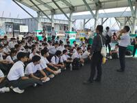 ⭐︎吹奏楽部の生徒たちもテントの中で開会式の演奏の練習中です。