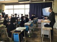 同窓会入会式が、3/9(木)行われました。同窓会長様、副会長様ご臨席のもと、同窓会長様から歓迎とお祝いの言葉をいただきました。同窓生でもある校長先生から、お話をいただき、昔の校舎の様子などを聞かせていただきました。代表生徒が、入会の言葉を述べ、同窓会への仲間入りを果たしました。そのあと、常任幹事の紹介がありました。県立一般選抜試験も終わり、いよいよ卒業へ向けてまっしぐらです。