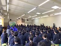 午前中は通常授業があり、午後は受賞伝達、生徒会任命式、終業式、通信表配布という流れの1日でした。校長先生からは、ノーベル化学賞を受賞した北川進京都大特別教授が記者会見で引用したパスツールの言葉「幸運は準備された心に宿る」の「準備」についてお話がありました。失敗をした時に何かのせいにせず、自分の強みと弱みが何なのかを振り返る事が大切だというお話でした。