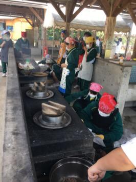 午後は1組が仲間づくりゲーム、2組が陶芸制作、3組がバームクーヘンづくりを実施しました。