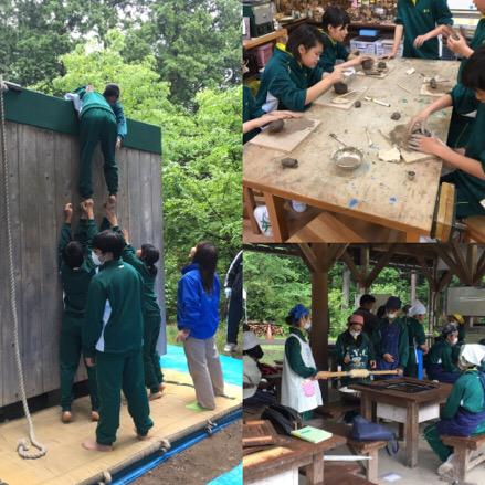午後は1組が仲間づくりゲーム、2組が陶芸制作、3組がバームクーヘンづくりを実施しました。