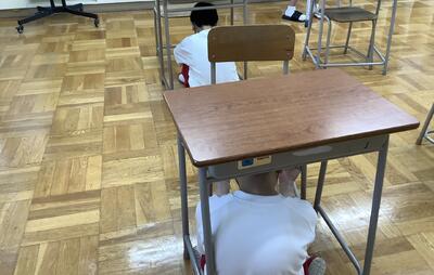 訓練の合図で、みんな迅速に動き、各教室でシェルターを作ることが出来ました。