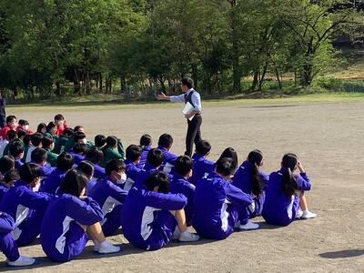 5時間目は、全校生徒が校庭で入退場の練習や、運動会の流れを確認しました。
