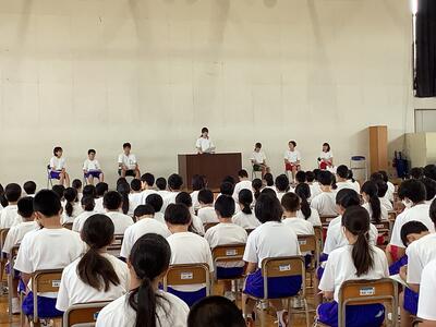 講話の最後に、元気に9月1日に皆さんと会える為に、本日学んだ事を忘れずに、安心・安全で有意義な夏休みにしていってほしい、というお話が校長先生からありました。