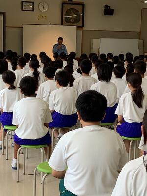 茂呂交番の警察官である田辺様をお迎えして、ご講話を頂きました。実際に現場で起きている事故等を、警察目線で注意喚起して頂きました。・非行防止・SNSによるトラブル防止・交通事故防止・水難事故防止の為の対策を具体的にお話して下さいました。
