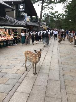 散策の時間では、お土産を買ったり、鹿と戯れたりして、楽しい時間を過ごしていました。