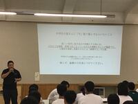 2年生の代表生徒が「1学期の反省」の中で、実行することの大切さなどを発表しました。校長先生からは「振り返り」と「反省」の違いや、ポジティブな考え方の大切さなどのお話がありました。