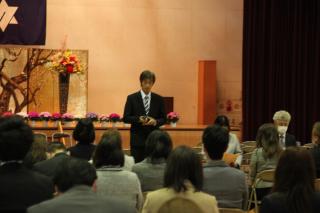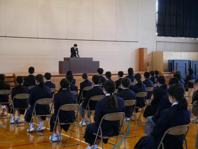 生徒会役員による進行、校長先生の式辞、生徒代表の言葉がありました。