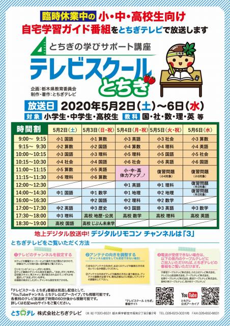 ※なお、この放送は、臨時休業中の課題等とは関係ありません。学習支援のための一つの方策として、放送されるものですので、ぜひご活用ください。