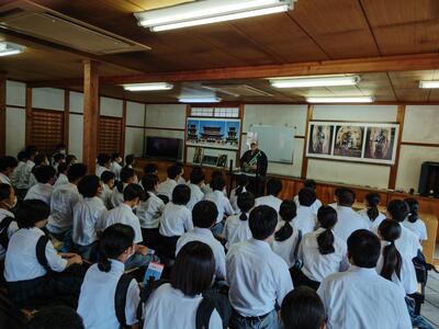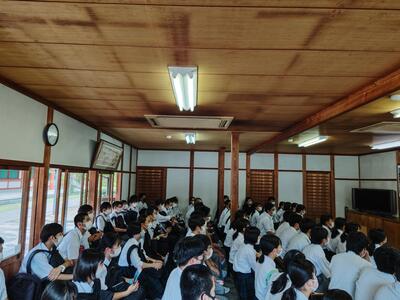 新型コロナウイルス感染拡大防止策をとって、講師の方と教室をオンラインでつなぎ講話を行いました。