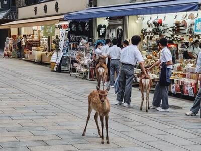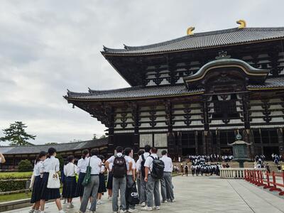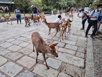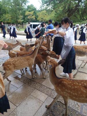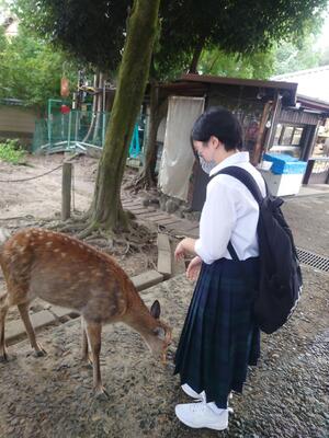 大仏の大きさに圧倒され、たくさんの鹿と楽しそうに戯れていました。