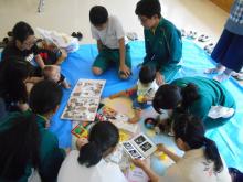 先週の事前講話や家庭科の授業で学んだことを実践的に学ぶ良い機会となりました。また、交流の後半では、生徒が授業で制作した絵本の読み聞かせが行われました。心を込めて作った絵本を中学生が丁寧にやさしく読みあげ、赤ちゃんも嬉しそうでした。