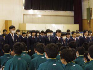 はじめに毎年恒例となっている、部活動ごとのメッセージビデオを鑑賞し、その後3年生のメモリアルビデオを鑑賞しました。部活動ごとのビデオでは、先輩への感謝の言葉に、クイズなども出題され、微笑ましい内容で楽しむことができました。3年生のメモリアルビデオでは、入学当初から現在までのスナップや動画が美しい曲とともに編集され、懐かしさで胸がいっぱいになり、涙する3年生もいました。