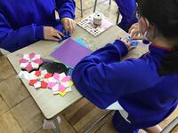2年生の総合的な学習の時間では、地域ふれあい学習を実施しています。コロナ禍のため、実際に施設を訪問して利用者の方と一緒に活動することは数年間できていませんでした。しかし今年度は、6月に地域の保育園や幼稚園を訪問し、本校の生徒と園児が一緒に活動をします。今日は、当日に使用する遊び道具を制作しました。生徒たちは、どのような活動なら喜んでもらえるか試行錯誤していました。