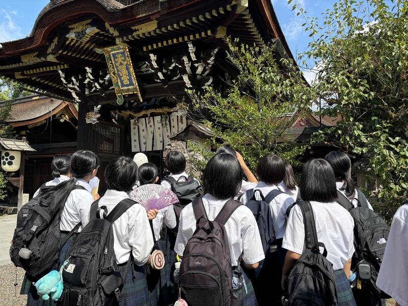 2日目は、タクシーで京都市内班別研修を行いました。伏見稲荷大社、八坂神社、清水寺など、班ごとに事前に計画を話し合って決め、その計画に沿って見学をしました。