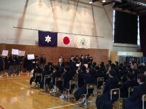 放送委員会、給食委員会、環境委員会が中心となっての生徒集会を行った後に、終業式を行い、滞りなく式を終えることができました。