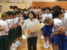 今年の4月から半年間お世話になった牛久千尋先生が、任期が終わるということで離任式を行いました。牛久先生からもらった笑顔と元気を忘れずに、これからの学校生活を有意義なものにしていきましょう。