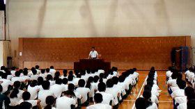 「3年生の皆さんは、夏の大会が最後の大会になります。残りの日を全力で頑張ってください。また、各種コンクールに向けて頑張っている文化部の皆さんも頑張ってください。」