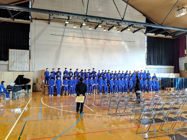 今回は卒業合唱の隊形の確認と練習を行いました。本番を想定して、感謝の気持ちを大きな歌声で伝えられるように練習に励んでいました。