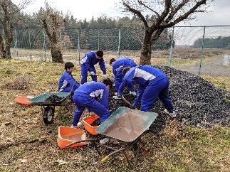 男子は、南駐車場にある砂利山を崩して、登下校する道を整地したり、駐輪場の白線を塗り直したりしました。