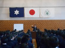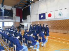 受賞伝達式の後、修了式が行われました。式辞では、平成30年度の学習が修了したこと、そしてこれからの北犬飼中学校を背負っていく生徒として必要なことを話していただきました。