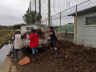 台風19号が通過した10月14日(月)、本校の周辺道路を保護者の方が清掃してくださいました。台風で運ばれてきたゴミをトラックに運び入れ、車が通れるようにしてくださいました。また、地域の方がパッカー車を貸していただき、漂流してきた大量のわら(5トン)も処分することができました。保護者や地域の皆様に感謝いたします。