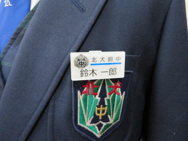 ネームプレートは取り外し式のものです。令和2年度から使用します。中央のラインは学年色です。