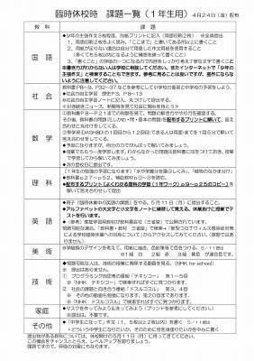 臨時休校時の課題一覧 1年(4月10日配布).pdf